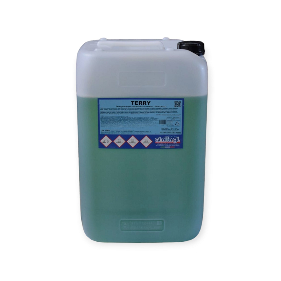 TERRY è un mono componente super concentrato con ceratura formulato per il prelavaggio in impianti automatici e manuali di vetture, autocarri, teloni, autobus, barche, cisterne, ecc. Grazie alla sua particolare efficacia, rimuove lo sporco più tenace dalle superfici senza dover spugnare o spazzolare; i suoi innovativi componenti permettono di lavorare in sicurezza e di lasciare le carrozzerie protette e super brillanti. Si consiglia di raffreddare bene con acqua le vernici calde e di non lasciare asciugare il prodotto. OTTIMO PER PISTE DI LAVAGGIO SELF SERVICE con acqua fredda o calda.