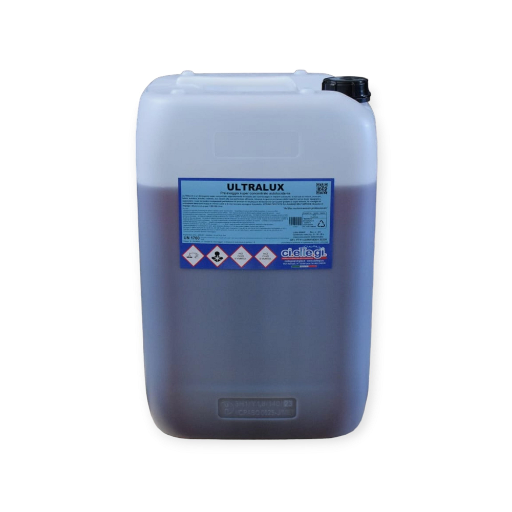 ULTRALUX è un monocomponente super concentrato appositamente formulato per il prelavaggio in impianti automatici e manuali di vetture, autocarri, teloni, autobus, barche, cisterne, ecc. Grazie alla sua particolare efficacia, rimuove lo sporco più tenace dalle superfici senza dover spugnare o spazzolare; i suoi innovativi componenti permettono di lavorare in sicurezza e di lasciare le carrozzerie protette e super brillanti. Si consiglia di raffreddare bene con acqua le vernici calde e di non lasciare asciugare il prodotto. OTTIMO PER PISTE DI LAVAGGIO SELF SERVICE con acqua fredda o calda